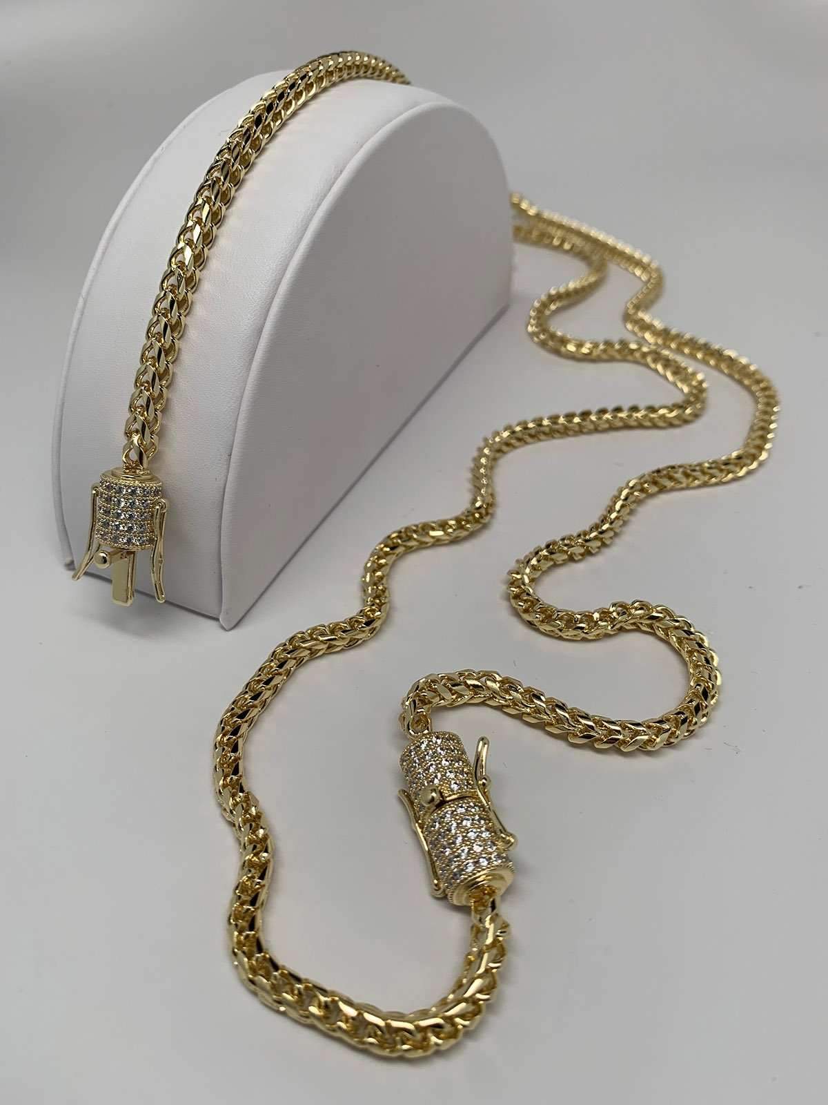4mm Franco Snake Chain Necklace Jewelry Set (Diamond Lock) Description: